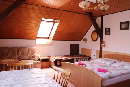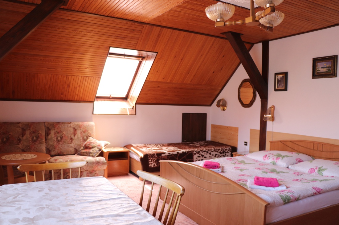 Naši hosté si mohou vybrat z několika pokojů o různém počtu lůžek. Všechny pokoje jsou vybaveny koupelnou a WC, dále ledničkou, varnou konvicí, hrnky, talířky, TV, SAT a WiFi připojením.